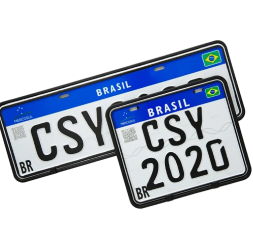 Placa de identificação veicular, também conhecida popularmente como “Placa Mercosul”.